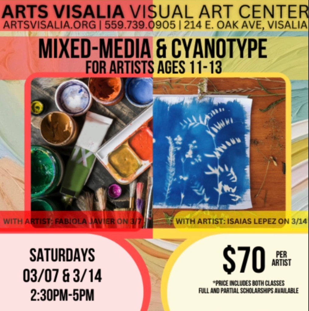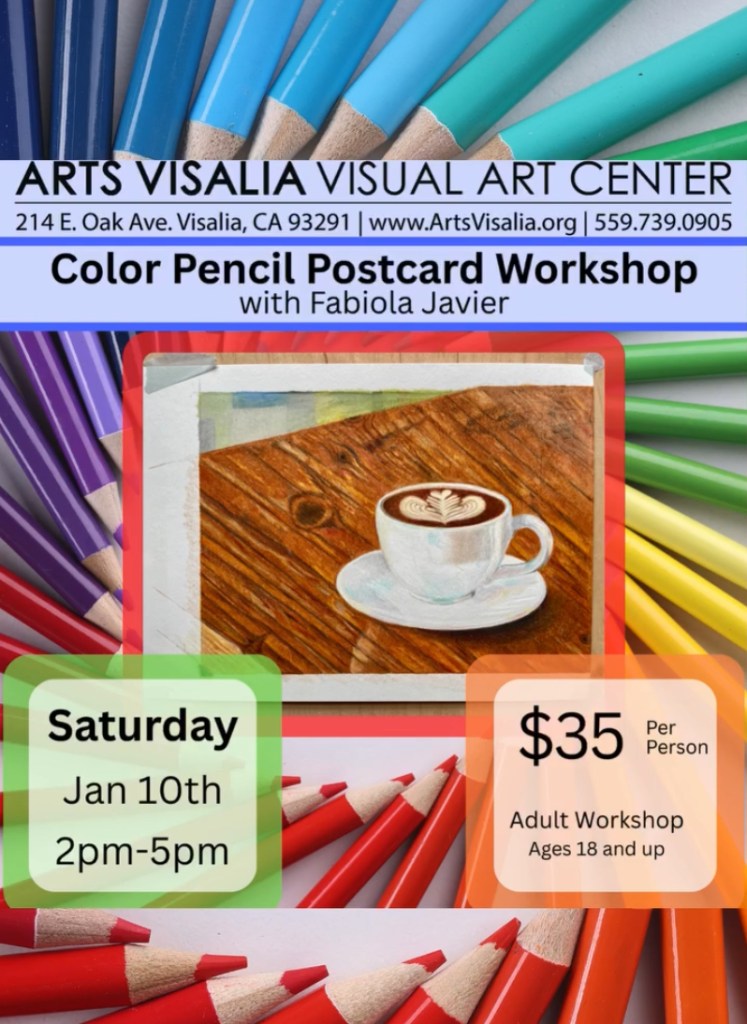 My mobile art studio travels to the students’ location if it is within Visalia, up to 20 miles from zip code 93292.